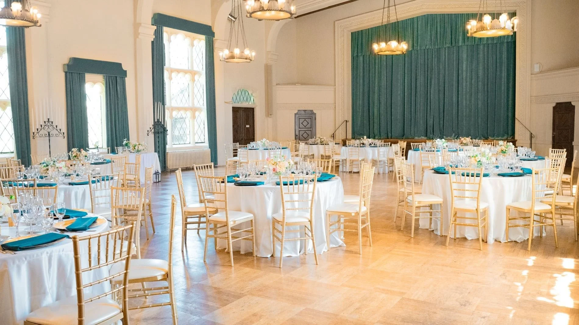 Its expansive layout allows for large dance floors, making it ideal for bigger guest counts and energetic crowds. The space pairs perfectly with professional DJ and lighting setups, creating a seamless transition from dinner to dance party.
